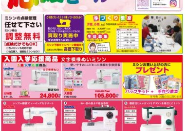 ✨ 入園入学応援セール 開催中✨ \ミシン専門店の安心サポートで春の準備を/ 日頃よりおしゃれ工房をご利用いただき、誠にありがとうございます。 ただいま当店では、 入園入学応援セールを開催しております。...