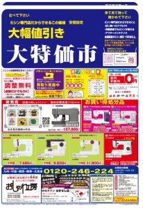 そのほか、チラシ掲載商品以外にもお得なミシンあり。店頭に予期せぬ掘り出し物があるかも♪
