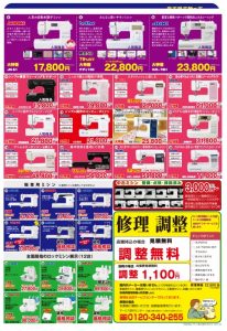 そのほか、チラシ掲載商品以外にもお得なミシンあり。店頭に予期せぬ掘り出し物があるかも♪