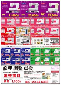 そのほか、チラシ掲載商品以外にもお得なミシンあり。店頭に予期せぬ掘り出し物があるかも♪