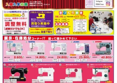🎉 12月 歳末大売出し 開催! 🎉 今年一年のご愛顧に感謝して、 12月1日より、当店恒例「歳末大売出し」を開催いたします! 人気の家庭用ミシン・職業用ミシンはもちろん、ロックミシンまで 歳末特別価格でご案内! ✅...